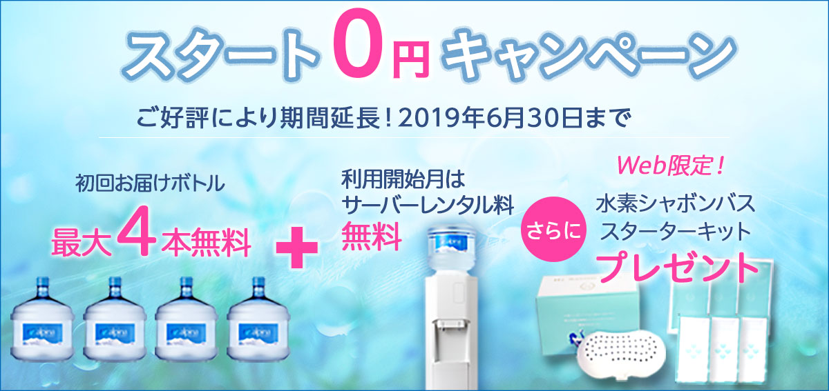 当サイトよりアルピナウォーターをお申込みで初回お届け分ボトルを無料でプレゼントするキャンペーンにつきまして、ご好評により2019年6月30日まで延長いたします。