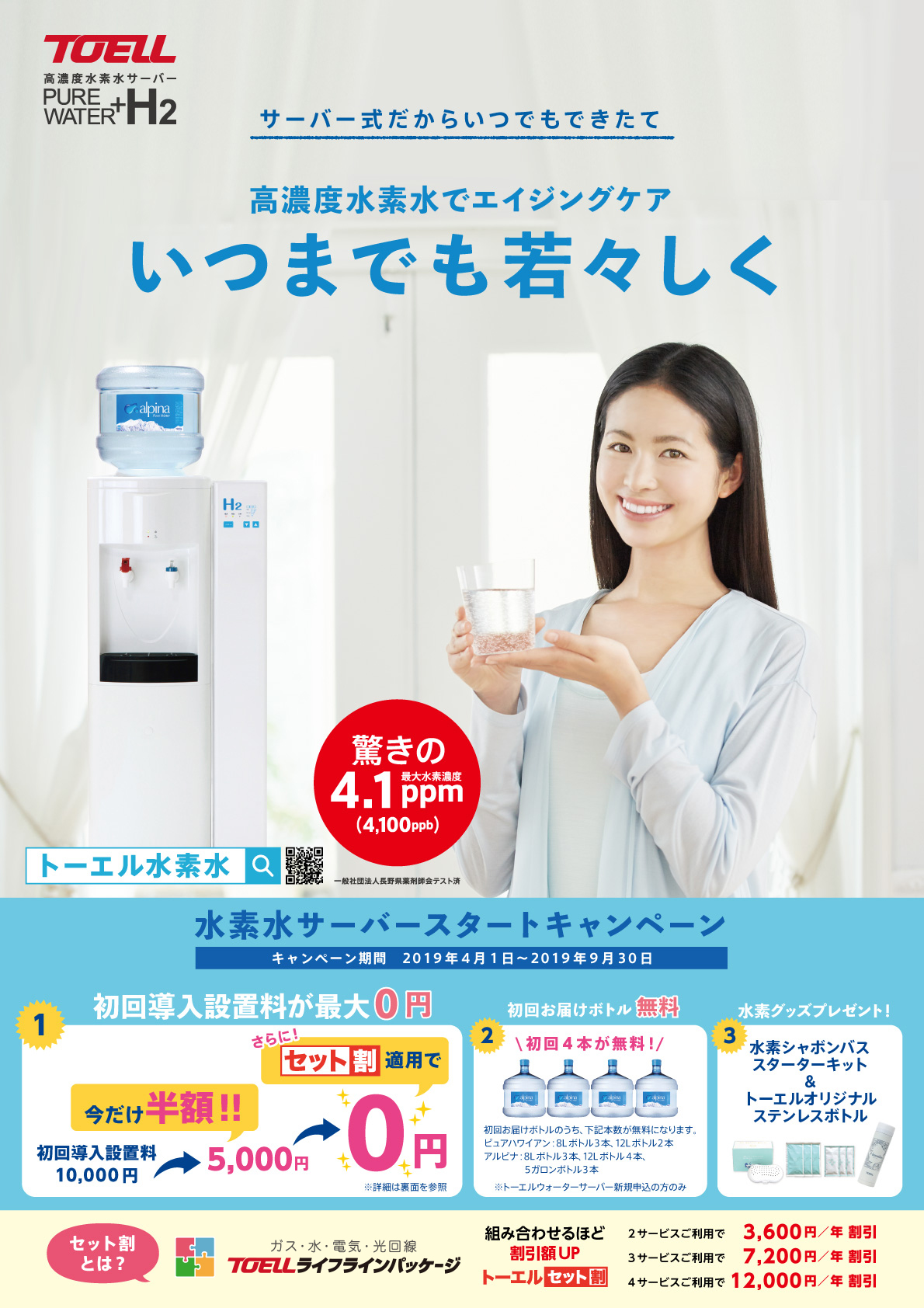 健康と美容に人気の水素水サーバーが、大変おトクに始められる期間限定キャンペーンを実施中です。