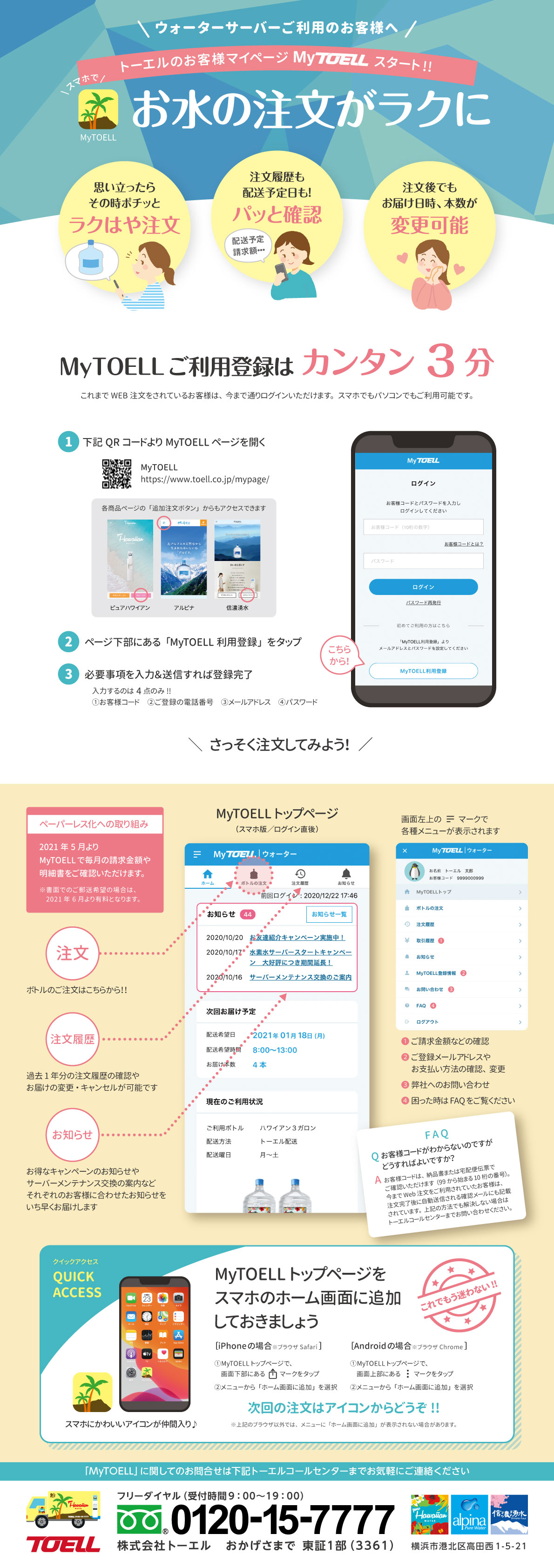 いつでも注文ができ、その他便利な機能がたくさんのMyTOELLに是非ご登録ください。